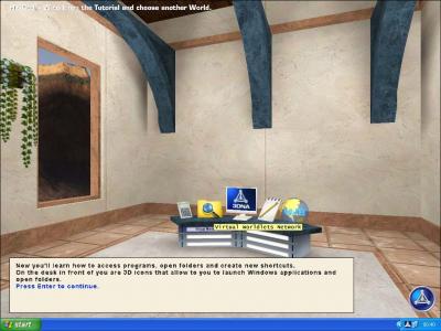 Believe it or not, but on that table, those objects you are looking at, are tied directly into Internet Explorer, 'My Computer' and a host of applications. The two drawer units beneath can be customised to point to any folder you like, with custom labels on their outside. Open them with your mouse, and the actual folder window pops open in front of you, in the familiar 2D format. |