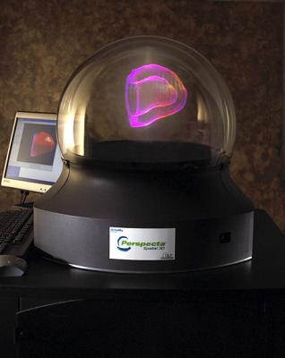 Any 3D model going into the display unit is analysed internally, and broken down into a collection of 2D stills, each of which is viewable from a slightly different angle. The result is a perfect 3D representation you can walk around, peer over the top of, or look up at from slightly underneath. For medical diagnosis - such as the heart valve taken from a patient's MRI data, the value is clear. |