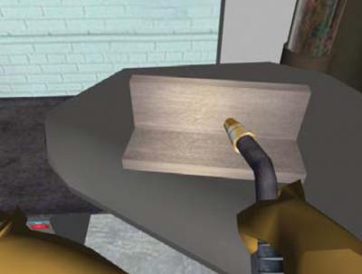The turn-key Virtual Reality Welding Trainer system, brainchild of both SGI and VRSim demonstrates the possibilities for VR in any training situation. A Custom-made head-mounted display totally immerses the user within a world, set up to match the size of an open space on a physical floor. They can wander freely within the world, and practice with an mock-up welding gun, held in their hands which is itself tied into the VR, and able to provide full haptic feedback for every manoeuvre.